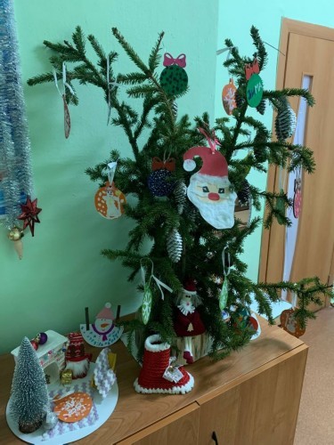 Ребята совместно с родителями изготовили из подручных материалов удивительные и очень красивые сувениры, элементы праздничного декора и ёлочные украшения. Все гости нашей группы с удовольствием и восхищением рассматривают яркие и необычные рукодельные шедевры.